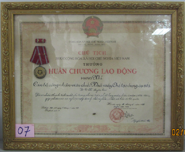 * Bằng khen của Bộ Công Nghiệp. Đã có thành tích trong phong trào thi đua thực hiện vượt mức kế hoạch sản xuất, kinh doanh và các nhiệm vụ công tác khác năm 2006.